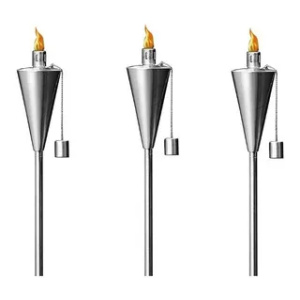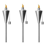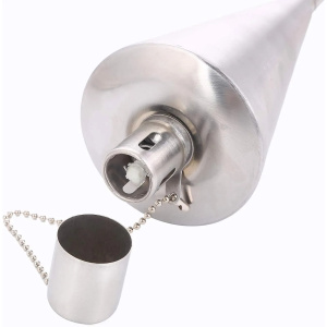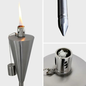Hermoso accesorio para exteriores. Esta antorcha de acero inoxidable es un elemento práctico y decorativo que añade un brillo iluminador a tu espacio al aire libre con una llama natural. Ideal para utilizar con aceite repelente de mosquitos e insectos citronella.