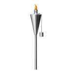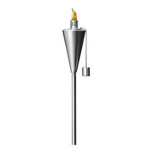 Hermoso accesorio para exteriores. Esta antorcha de acero inoxidable es un elemento práctico y decorativo que añade un brillo iluminador a tu espacio al aire libre con una llama natural. Ideal para utilizar con aceite repelente de mosquitos e insectos citronella.