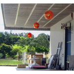 Es una esfera inflable, realizada con vinilo, material altamente resistente, con colores fuertes y brillantes para aumentar su eficacia como repelente visual de pájaros.