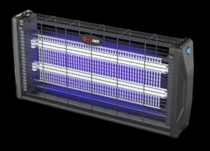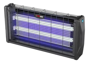 En el interior hay dos tubos fluorescentes, que utilizan una longitud de onda óptima para atraer a los insectos, dispone de rejilla metálica de alto voltaje, que mata a estos insectos y bandeja removible en la parte inferior, para recoger los insectos.