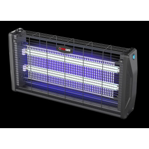 En el interior hay dos tubos led fluorescentes, que utilizan una longitud de onda óptima para atraer a los insectos, dispone de rejilla metálica de alto voltaje, que mata a estos insectos y bandeja removible en la parte inferior, para recoger los insectos.