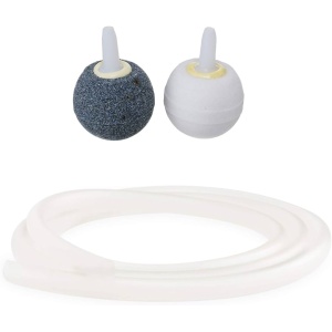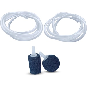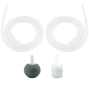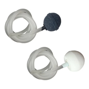 Kit de 2 Piedra difusora de cerámica, color gris poro comprimido. Apto para agua de consumo. + 2 Tramos de Manguera de 90 cms. c/u Diámetro interior 4mm. Diámetro ext. 6 mm.