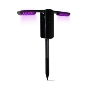 La lámpara solar para matar mosquitos utiliza una luz ultravioleta de alta frecuencia .Luz que se ha demostrado que es la más eficaz, para atraer a volar Insectos durante el dia o la noche para formar un práctico, eficiente, Sistema electrónico de exterminación de insectos higiénico y automático. Simplemente encienda la lámpara, de modo que los insectos voladores o que se arrastran cerca Serán atraídos por la luz y se acercaran al equipo y resultara en su electrocución.