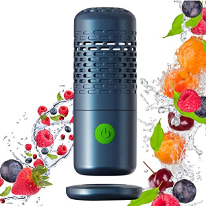 Fácil de usar: el elegante diseño del purificador de verduras multifuncional llama la atención. Rotación flexible para facilitar el desmontaje y la limpieza. Mantenga los alimentos frescos Simplemente presione el interruptor y el funcionamiento es simple. Pequeño y portátil: el purificador de frutas y verduras es de tamaño pequeño, fácil de almacenar y transportar, se puede colocar en cualquier recipiente que desee.