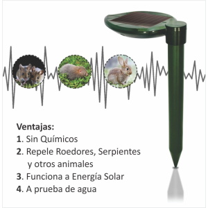 El repelente de Roedores y serpientes emite un pulso sónico como una vibración transmitida a través del suelo. El roedor y la serpiente luego perciben una zona de peligro que hace que evacuen el área.